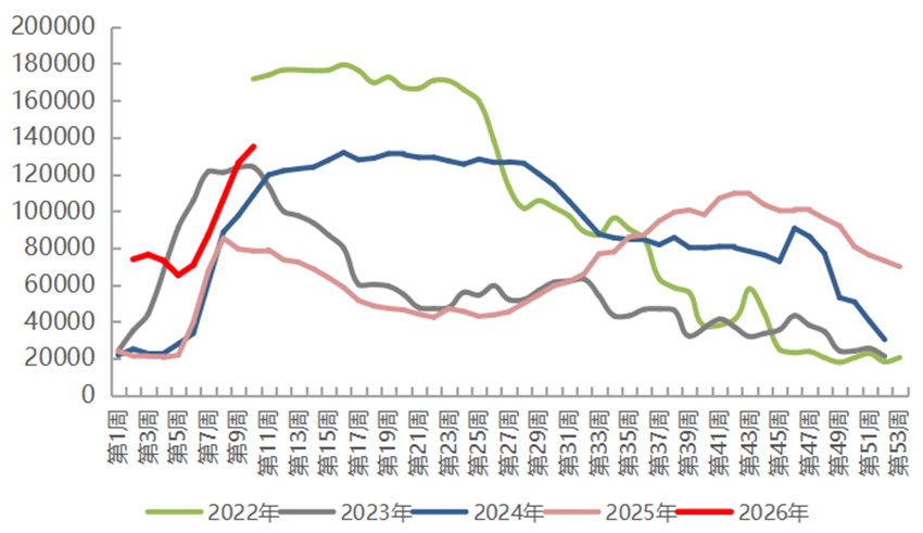 2025年国内精炼锌总产量为752.8万吨,同比增长9.3%。相关数据显示,今年2月国内精炼锌产量为50.46万吨,较1月下降5.6万吨,同比小幅增长5%;1—2月累计产量为106.52万吨,同比增长6.2%,预计3月后产量将有所回升。随着国产矿供应逐步恢复,副产品硫酸价格保持坚挺,冶炼厂的生产利润料将改善。