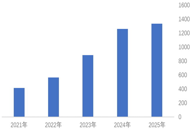 图为波斯湾国家进口中国钢材数量(单位:万吨)