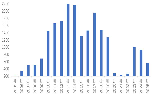近年来,中国进口自伊朗的铁矿石持续下降,占总进口量的比重不高。2010—2014年,中国进口伊朗铁矿石峰值超2000万吨。随后,受伊朗国内钢厂需求增长和对铁矿石加征出口关税影响,中国进口量逐步下降。2025年,中国进口伊朗铁矿石570万吨,占中国铁矿石进口总量的0.45%。