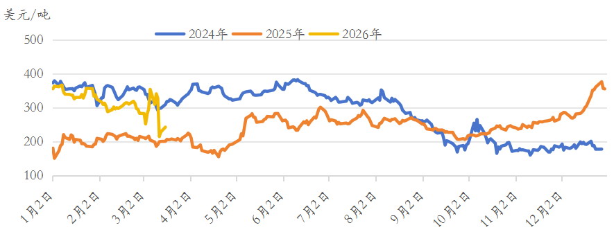 2026年以来,具有全球代表性的PX(CFR中国)现货价格经历了一轮强势上涨,从年初的894美元/吨一路攀升至3月17日的1274.67美元/吨,累计涨幅超过40%,引发聚酯产业链广泛关注。