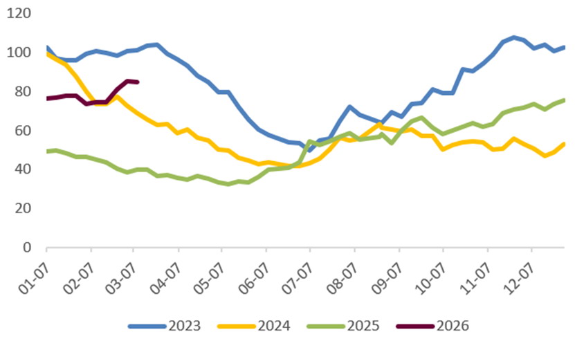 受国际能源属性支撑与国内弱现实需求影响,国内豆油市场呈现外强内弱、高位震荡的格局。中东局势持续升级,国际原油价格强势运行,这从生物柴油路径直接强化了豆油乃至整个植物油的能源属性,构成了最顶层的情绪和估值驱动。同时,市场对美国环保署可能大幅上调2026年生物质柴油掺混义务量抱有强烈预期,这为美豆油创造了长期的需求增长想象空间,并通过成本传导影响国内盘面。