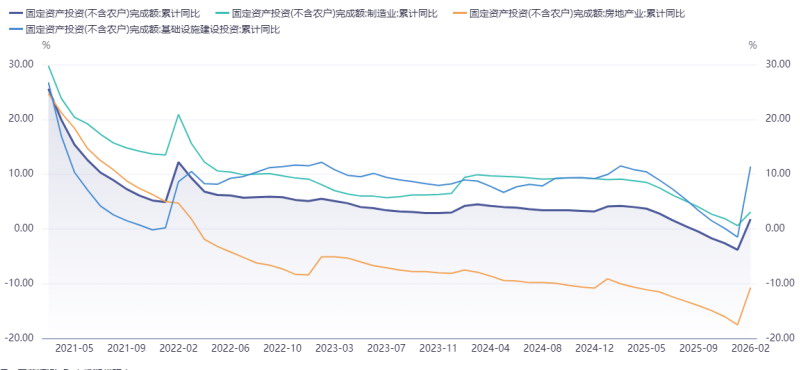 整体看,1—2月经济数据好于预期,量价指标较去年年末有所修复。今年经济增速目标调整至4.5%~5%,“十五五”规划纲要对扩大内需作出部署,后续财政资金及政策性金融工具将形成更大撬动作用,关注内需进一步改善信号。