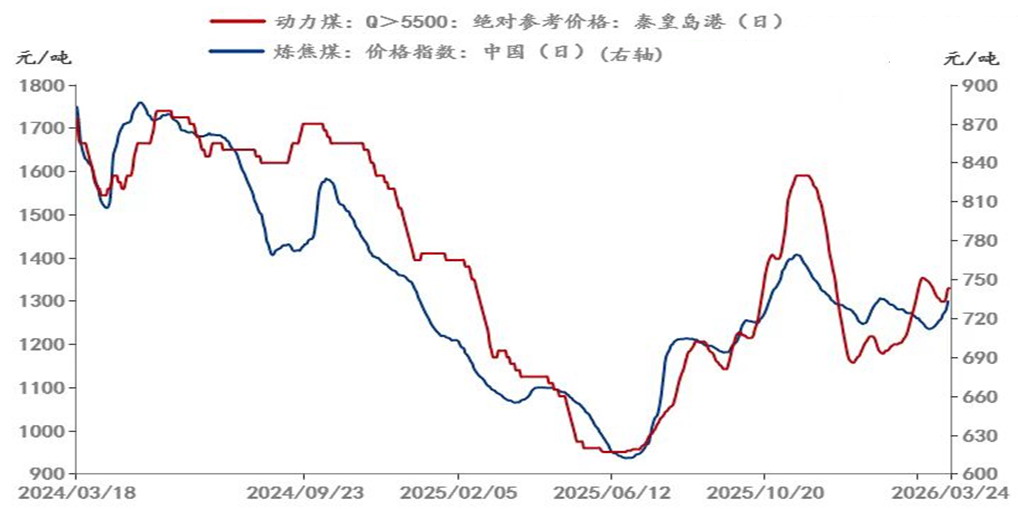 能源替代方面,天然气与原油价格高位运行,气电、油电发电成本大幅攀升,煤炭发电的成本优势凸显。海外为应对油气供应缺口,增加煤炭采购规模,用于发电及煤化工生产。同时,原油暴涨导致海运船费价格上涨,煤炭运输成本增加,进一步带动国际煤炭价格。在全球能源供应链不确定性加剧的背景下,煤炭作为能源安全战略物资的属性被重估,焦煤估值中枢上移。