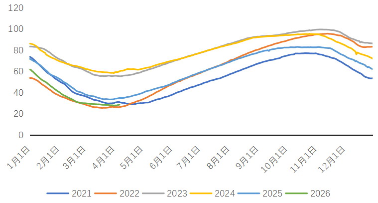 目前欧洲天然气库存处于低位。截至4月6日,欧盟天然气储气负荷仅为28.62%,处于往年同期极低水平,接近俄乌冲突爆发当年(2022年)水平,后期补库需求激增。本轮中东战事爆发以来,欧洲管道天然气价格飙升。截至4月6日,荷兰TTF天然气期货结算价为50.04欧元/兆瓦时,较2月底上涨超50%。