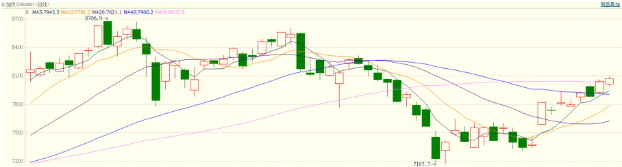 IC加权继续以中小阳线上涨,目前已经突破60日均线。中短周期均线多头排列,5日均线保持稳定的上升斜率,市场已经转向多头。MACD延续上行,红柱逐步扩张。但DEA仍在零轴下方,说明市场尚未完全进入强势状态。在反弹过程中,成交量和持仓量并未跟随价格变化,表明推涨的力量可能主要来自场内资金的持仓调整,上涨的持续性存疑。综合来看,IC以谨慎偏多看待。(张煜 期货投资咨询从业证书编号Z0018066)