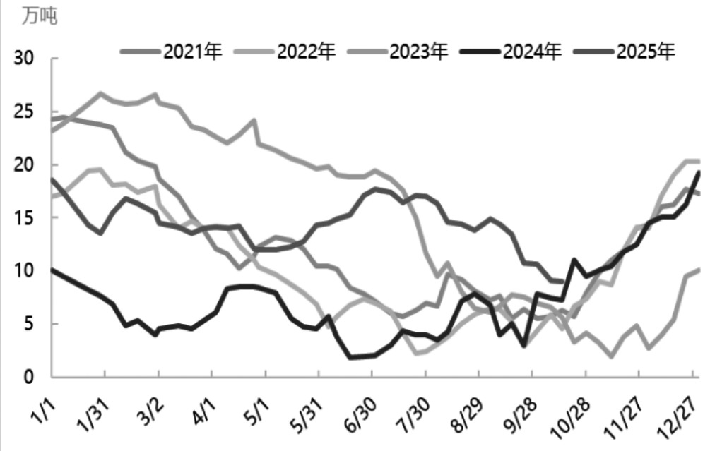 在供需双弱背景下,成本端支撑持续减弱,进一步加剧市场下行压力。随着供需矛盾加剧,国内纯苯库存居高不下。尽管近期华东港口库存出现阶段性回落,但整体仍处于相对高位,基本面支撑不足。据隆众资讯统计,截至10月13日,华东地区江苏纯苯港口样本商业库存总量为9万吨,周度略降0.1万吨,但较去年同期的7.3万吨增加1.7万吨,同比增幅达23.29%。