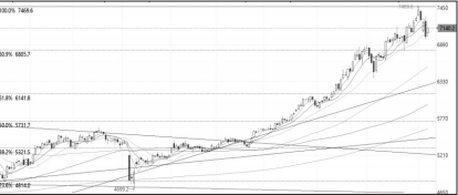 近期,IC主力连续合约盘中创出上市以来的新高7469.6点。均线方面,呈现多头排列,说明上涨趋势保持良好,但短期均线拐头,短期走势转弱。指标方面,MACD指标DIF、DEA线反复交织,并且出现多重顶背离现象,给出看跌信号;KDJ指标、RSI指标死叉,给出看空信号。量仓方面,价格下跌伴随着增仓放量,而价格上涨伴随着减仓缩量,多头力量减弱。综合分析,IC可能继续回调。