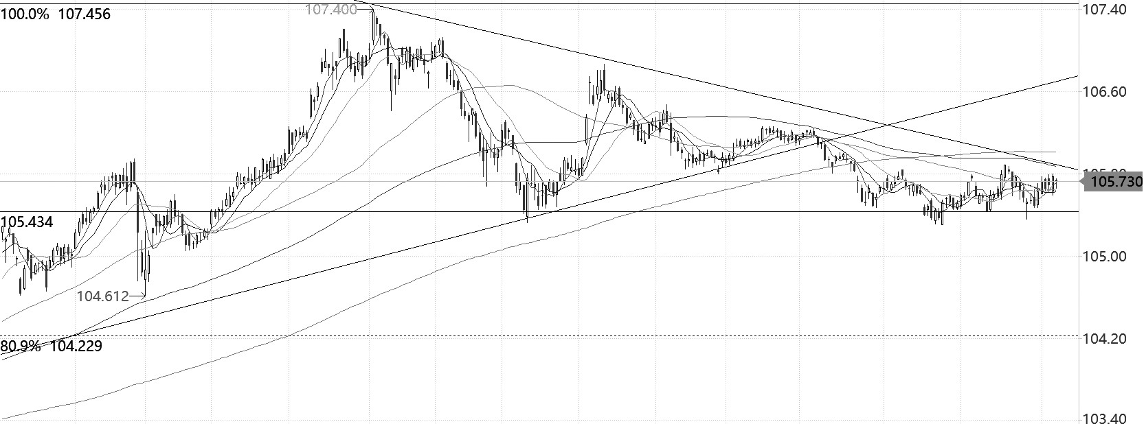 TF主力连续合约创出107.4点的上市新高后回落,之后走出一个下跌三角形,但三角形下沿始终未跌破。近期,价格小幅反弹。均线方面,各均线交织,没有明显的趋势性。指标方面,MACD指标高位金叉,但有效性存疑;KDJ指标、RSI指标有高位黏合迹象,短期走势或转弱。量仓方面,量能有所上升。综合分析,TF跌至重要支撑位,指标分化,后续将给出方向。(弘毅物产 黄李强)