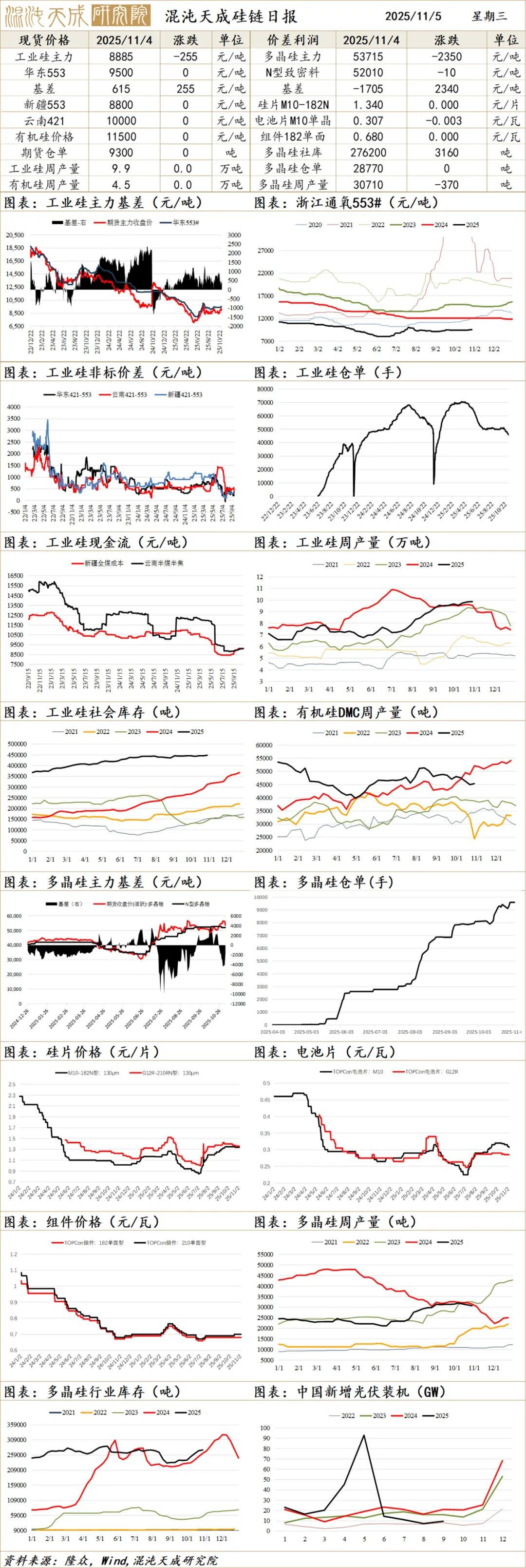 1、反内卷实际影响不大,核心供需预计边际改善,但仍累库。10月供增需稳,11月供稳需弱。目前看西南产量见顶,但合盛仍有复产预期,总产量预计枯水期边际改善,累库收窄,但格局暂未变。