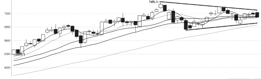 IC加权合约的高点越来越低,低点则越来越高,走出三角形整理形态。随着上下空间的收窄,价格逐步接近整理末端。考虑到此次整理位于前期价格持续上涨之后,属于中继形态,未来选择向上突破的概率更大。中短周期均线交织,60日均线延续上行态势,大方向依旧向上。MACD指标在零轴上方也处于多空僵持状态。量仓方面,近期成交量收缩,持仓量下滑,说明在方向明朗之前,多空双方均在等待。综合分析,IC将小幅整理,以等待方向指引。