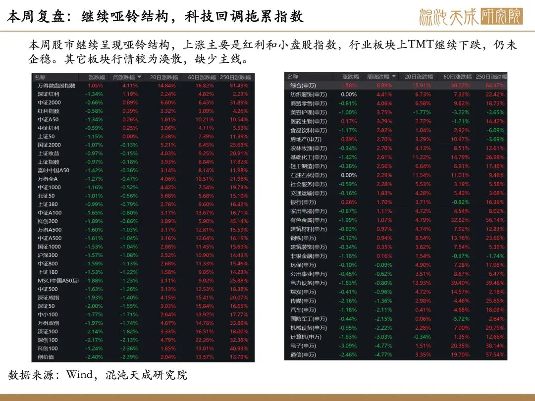 基本面:投资和外贸均同比负增长,经济复苏仍然偏慢,白酒和地产仍未企稳。国内景气度集中在资源能源、科技金融板块,但相关板块前期已经积累了较大涨幅,但基本面并不支持切换到其它非景气板块。