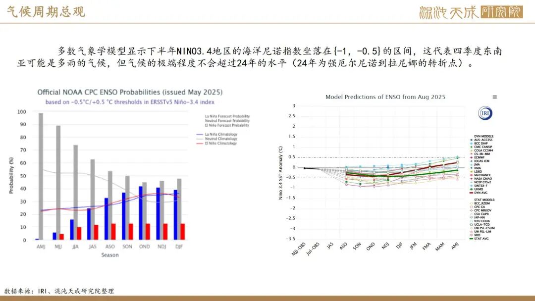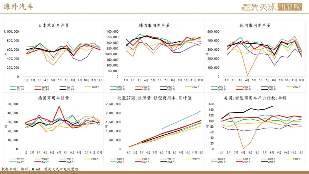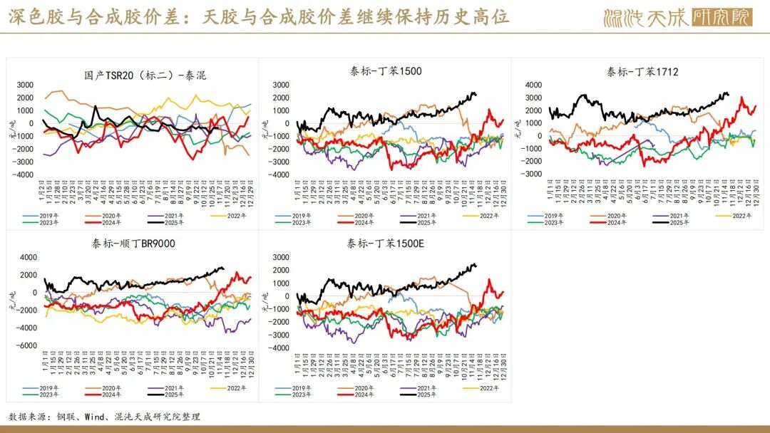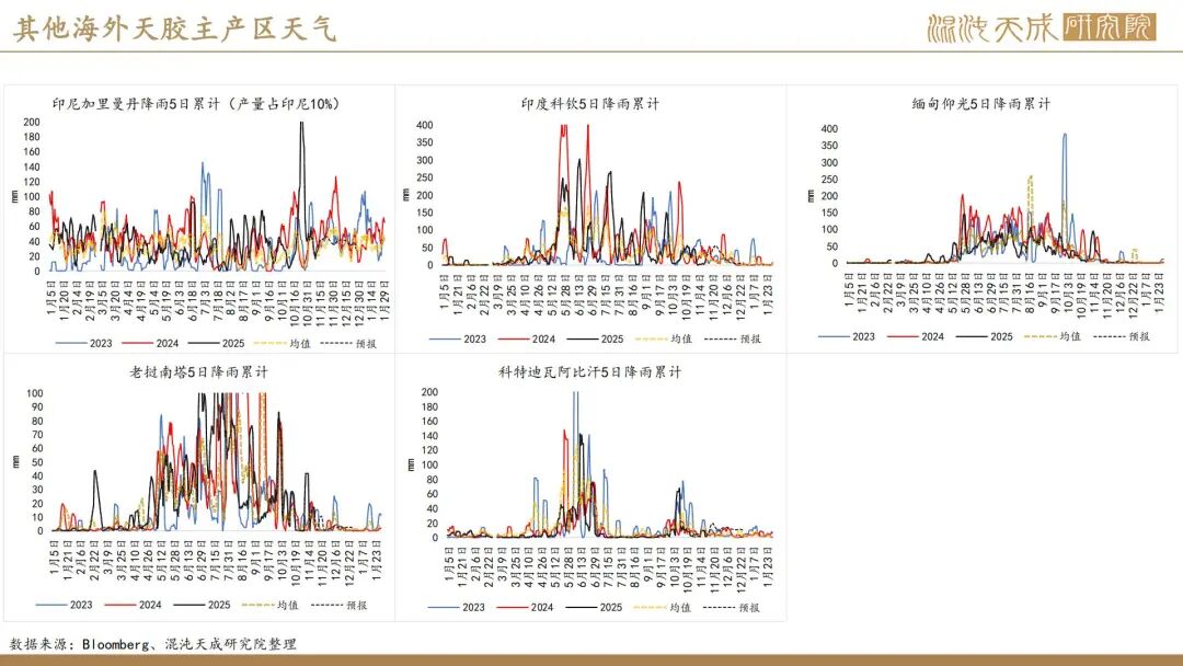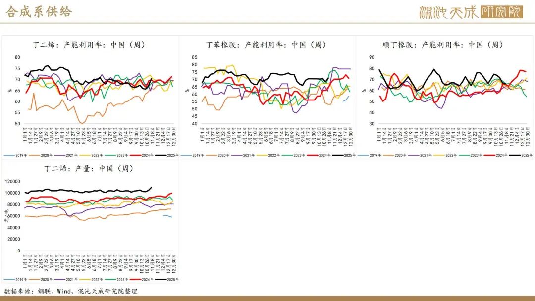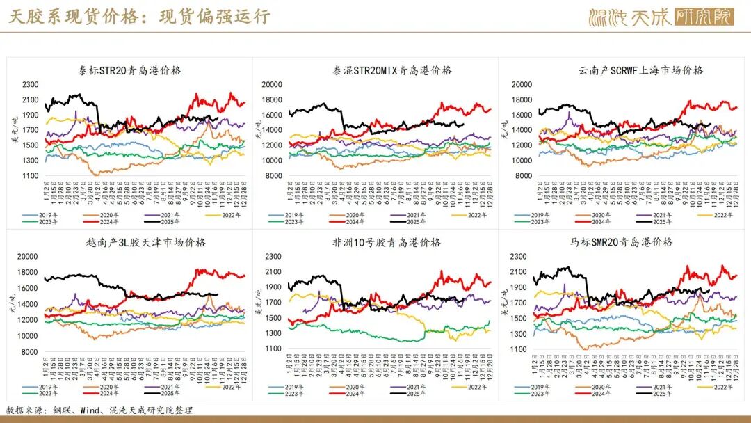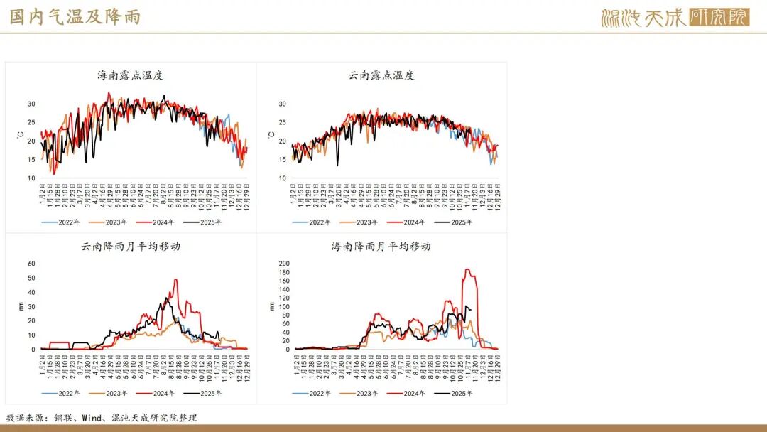 出口方面, 2025年前10个月,科特迪瓦橡胶出口量共计138万吨,较2024年同期的121万吨增加13.8%。单看10月数据,出口量同比增加6.6%。目前的供应格局是,三季度所谓主产国减产预期被进出口数据证伪,东南亚除泰国外的产量减量与科特迪瓦产量增量相当,而泰国地区四季度上量预期强,泰农业部预期25年对比24年同比增产,故而25年预期全球总产量保持增长,产量拐点仍然未到。