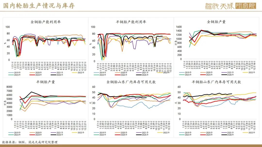 政策方面,周期内天然橡胶、合成橡胶、炭黑价格上调,轮胎成本面稍有支撑。多数企业根据自身订单及库存情况灵活调整销售政策,多数延续稳定,部分涨价企业,涨价执行难度较大,预计短期维持观望,实单详谈为主,不排除个别企业为刺激出货,存个别产品促销可能。