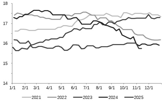 2021年以来,我国房地产行业开始进入下行周期,新开工、竣工、销售等关键指标持续下行,房屋库存积压。2024年,房屋新开工面积降至7.39亿平方米,相比2019—2020年巅峰时期的22亿多平方米,下滑67%左右。房屋竣工面积于2021年见顶,当年竣工面积为10.14亿平方米;2022年出现下滑;2023年受“保交楼”政策推动,同比增长17.0%,至9.98亿平方米;2024年下滑27.7%,至7.37亿平方米。随着新开工面积的下行,存量待竣工面积也明显缩减。从销售数据来看,2021年新建商品房销售面积为17.94亿平方米,2024年降至9.74亿平方米,仅为2021年的54.3%。2025年上半年,新建商品房销售面积同比降幅虽收窄至3.5%,但绝对量仅为2021年同期的57.6%。房屋库存压力较大,待售面积持续创历史新高。