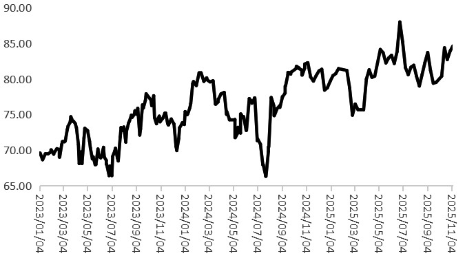 今年前三个季度,国内煤制甲醇装置处于微利状态,甲醇开工率持续上升。进入四季度,随着甲醇供大于求问题凸显,甲醇价格持续回落。加之冬季取暖旺季到来,煤炭价格坚挺,国内煤制甲醇企业经营每况愈下。截至目前,国内煤制甲醇、气制甲醇分别亏损250元/吨和440元/吨,并且亏损幅度呈现持续扩大的态势。但国内甲醇开工率并没有因此出现明显下降。截至11月14日,国内甲醇开工率为84.63%,较去年同期上升3.67个百分点。国内甲醇的周度供应量接近200万吨的高位,加上进口,总供应量在240万吨左右。