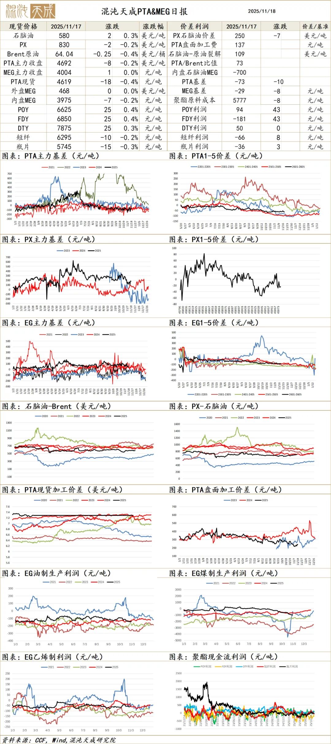 结论:PX、PTA自身供需正处于强弱转换预期中。反内卷暂无实质进展,但行业联合减产预期上升。原油震荡、基本面中性,反内卷偏强,共振度仍不高。