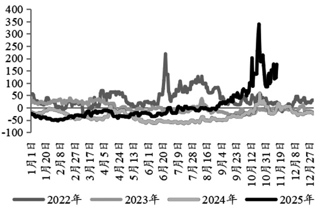 值得注意的是,4月中下旬以来,伦锌库存不断下降,截至11月12日,库存为3.78万吨,与4月的高点相比下降80.65%,同比下降84.79%。随着库存不断下降,伦锌近远月合约价差开始收窄,8月底伦锌转为Back结构,10月中旬转为深度Back结构,近月合约溢价飙升至历史高位,市场流动性持续承压。10月底,伦敦金属交易所(LME)表示,计划制定永久性规则,在库存水平偏低的情况下,对在近月合约中持有大额头寸的会员实施限制。LME此举标志着其对“近月流动性风险”的系统性应对进入常态化阶段。随后伦锌近远月合约价差虽然有所收窄,但依旧处于绝对高位,市场结构性风险尚未完全消除。