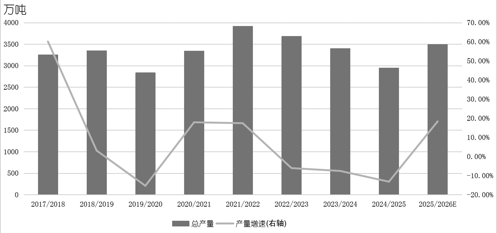 印度2025/2026榨季自10月下旬陆续开榨,卡纳塔克邦开榨时间提前至10月20日。截至11月4日,印度北方邦已有21家糖厂启动运营,共有53家糖厂下达了甘蔗采购订单。11月初,印度糖业与生物能源制造商协会(ISMA)发布2025/2026榨季食糖产量的首次预估数据。根据ISMA数据,该榨季印度食糖总产量预计为3435万吨。如果减去分流到乙醇的340万吨食糖,该榨季食糖净产量预计为3095万吨,相比2024/2025榨季增加近500万吨。这一乐观预期主要基于充沛的季风降雨、主要产糖邦甘蔗种植面积的增加以及政府及时提高甘蔗收购价格等因素。同时,印度食品部宣布,新榨季印度出口配额为150万吨,低于此前市场预估的200万吨。在当前原糖价格水平下,印度不具备出口动力,市场预期明年一季度原糖价格将有小幅修复,以吸引印度出口,补充阶段性短缺的贸易流,但是向上空间有限,预计仍受全球增产的压制。