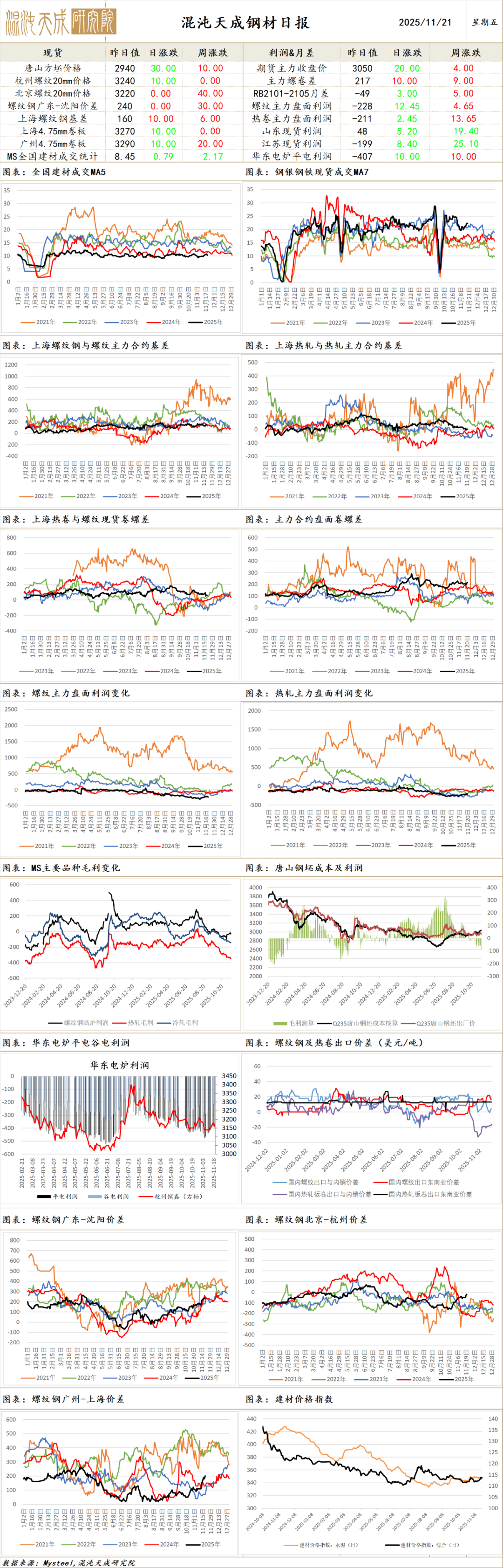 需求端,本周机构数据均显示钢材厂库、社库延续下降,且总库存降幅有所扩大,各品种钢材表需大多有不同程度增长。另据百年建筑调研,本周全国水泥出库量290.55万吨,环比上升1.5%,基建水泥直供量环比上升1.2%;混凝土发运量为153.97万方,环比减少1.29%;样本建筑工地资金到位率59.8%,周环比上升0.04个百分点,显示建筑下游需求依然喜忧参半。海外方面,昨日公布的美国9月失业率新高,但非农就业超预期增长,外盘商品多有小幅上涨。国内方面,11月国内5年期及1年前LPR保持不变,但杭州发布地产利好政策,国内政策预期依然向好。进出口方面,昨日国外主要地区钢价普遍持稳,目前国内外冷热卷价差变动不大,国内钢材仍有一定出口空间。