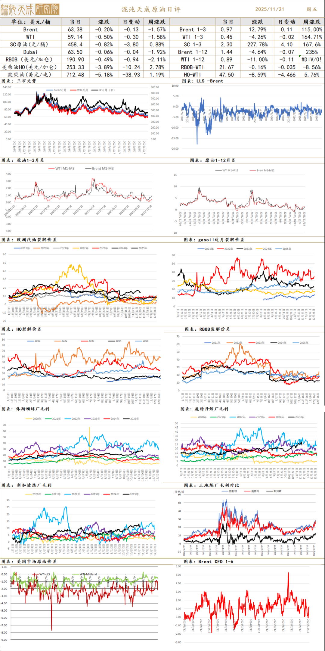 库存价差:截至11月14日,EIA原油库存下降343万桶,汽油库存上涨233万桶/日,馏分油库存上涨17万桶/日。原油月差在最近俄油制裁冲击下出现反弹。
