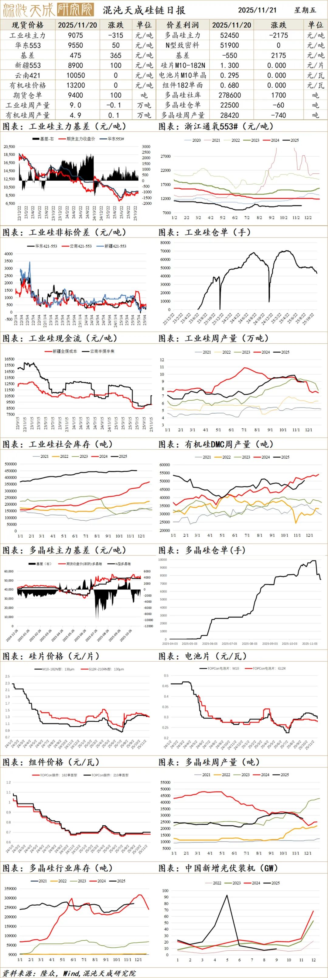 1、反内卷实际影响不大,核心供需预计边际改善,但仍累库。11月供需双弱,西南兑现减产,枯水期边际改善累库收窄。本周传北方环保、西南能耗,均为例行情况,预计实际影响不大。需求端有机硅有限产提价预期,目前了解减产30%是较产能,实际减产要低于此幅度。