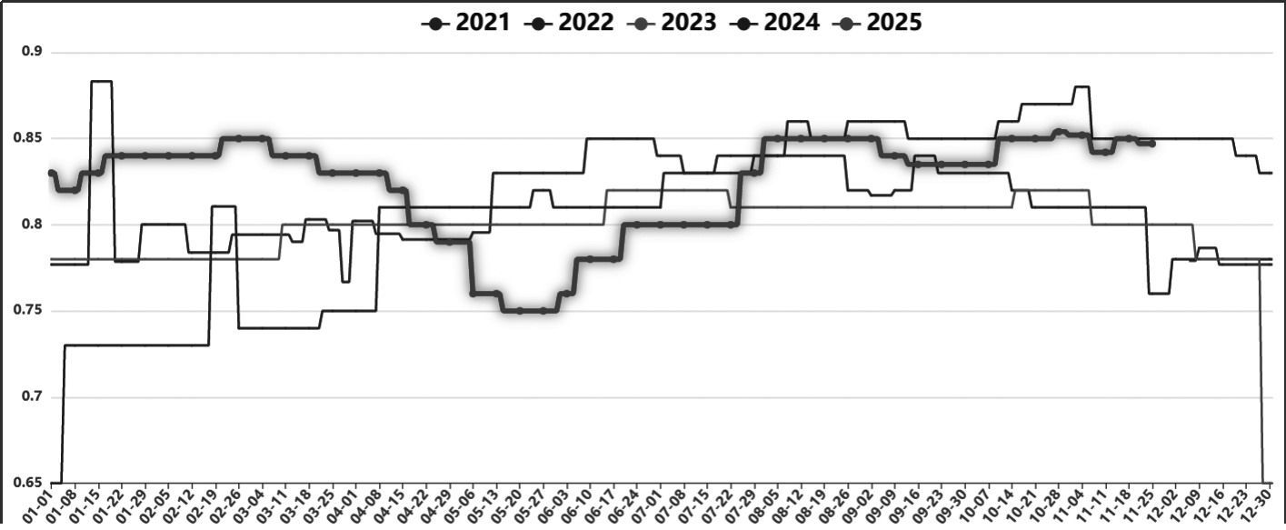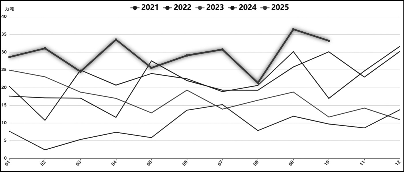 2025年1—9月,我国烧碱出口量约为294.45万吨,给上半年的期货和现货价格带来了一定的支撑。但是,东南亚产能扩张和海运费用上涨将削弱我国烧碱的价格优势,四季度出口增量或有限,截至11月新的出口订单数量寥寥,因此出口给烧碱价格带来的支撑也会走弱。