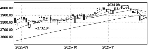 美国政府恢复运转后,美国劳工部公布9月就业数据,其中美国9月非农就业人口增加11.9万,大幅超出预期的5.1万;美联储公布10月会议纪要,其内部对12月是否降息存在明显分歧,美联储未来货币政策走向的不确定性上升。美股因此高位调整,海外流动性边际收紧的担忧间接压制A股市场情绪。此外,以英伟达为代表的科技板块出现估值是否偏高、业绩能否持续超预期等疑问,加之软银、桥水等国际机构减持,市场对科技股行情的延续性存在分歧。受上述因素影响,上周五,A股主要指数低开低走,上证综指盘中最低触及3840点。