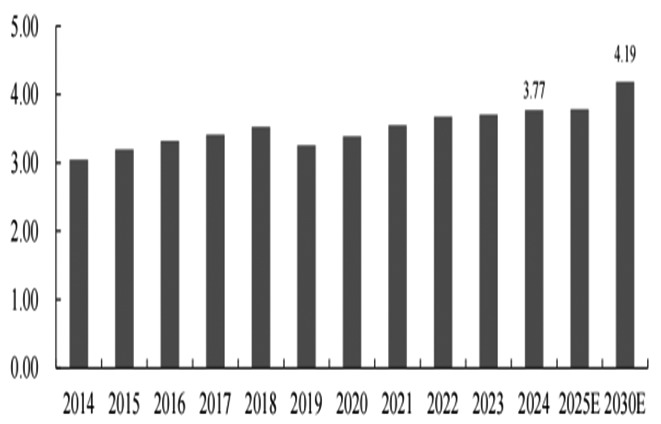 风电和光伏方面,2025年9月24日,习近平主席在联合国气候变化峰会上提出,到2035年我国风电和光伏总装机容量力争达到36亿千瓦。截至2025年9月末,我国风电和光伏装机合计17亿千瓦,那么按照32亿~36亿千瓦目标测算,则每年新增风电和光伏装机在1.51亿~1.88亿千瓦,到2030年末风电和光伏总装机容量预计达到26.98亿千瓦。