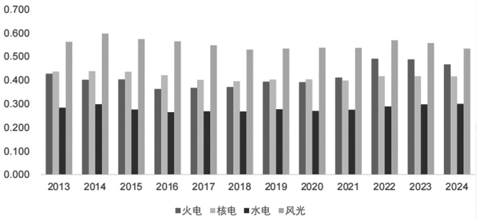 图为我国各类电源平均上网价格(单位:元/千瓦时)