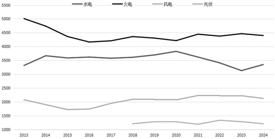 根据对行业重点上市公司的电价统计,2018年全国平均上网电价每千瓦时0.37元(以下均为每千瓦时),其中煤电0.37元、水电0.27元、核电0.40元、风电0.53元、光伏0.86元。水电电价较全国平均水平低0.1元,水电与火电的价差为0.1元。2024年全国火电公司平均上网电价0.47元、水电0.3元、核电0.42元、风电0.53元、水电与火电的价差扩大至0.17元。