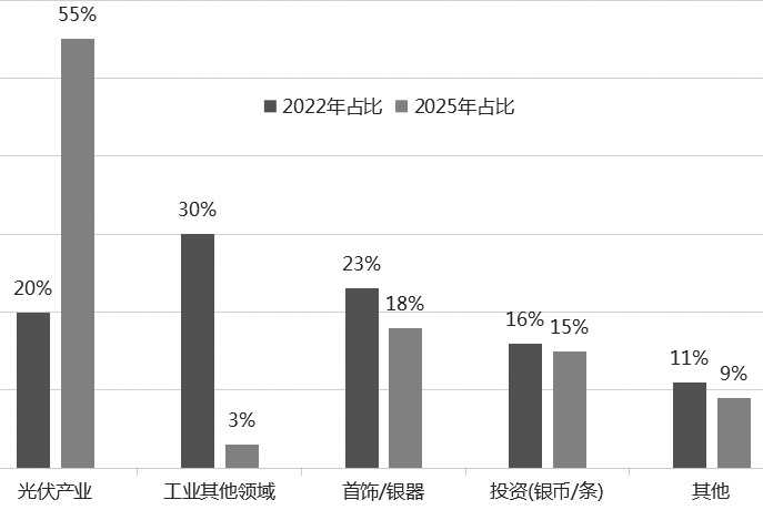 2025年全球白银需求爆发式增长是核心中的核心。光伏产业成为最大“用银大户”,2025年世界光伏用银量达7560吨,较2022年翻倍增长,占全球白银总需求的比重从2022年的20%飙升至55%,彻底颠覆了白银的传统需求结构。2025年全球新能源汽车和AI算力服务器与数据中心领域也贡献较大增量:新能源汽车行业白银消耗量达2566吨,新增520多吨,年增速超12%;AI算力服务器与数据中心用银量较传统设备增加30%。全球5G基站建设加速带动高频通信设备用银增长,进一步拓宽应用边界。上述白银应用四大领域共同构成今年全球白银需求的“四大支柱”。