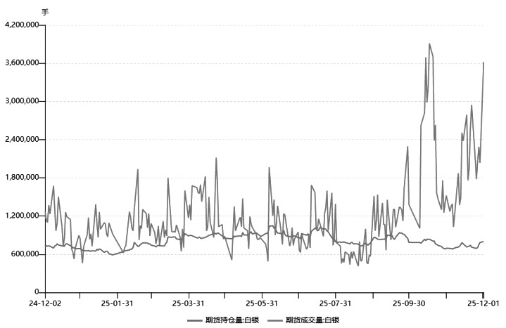图为2024—2025年上期所白银期货成交量和持仓量数据