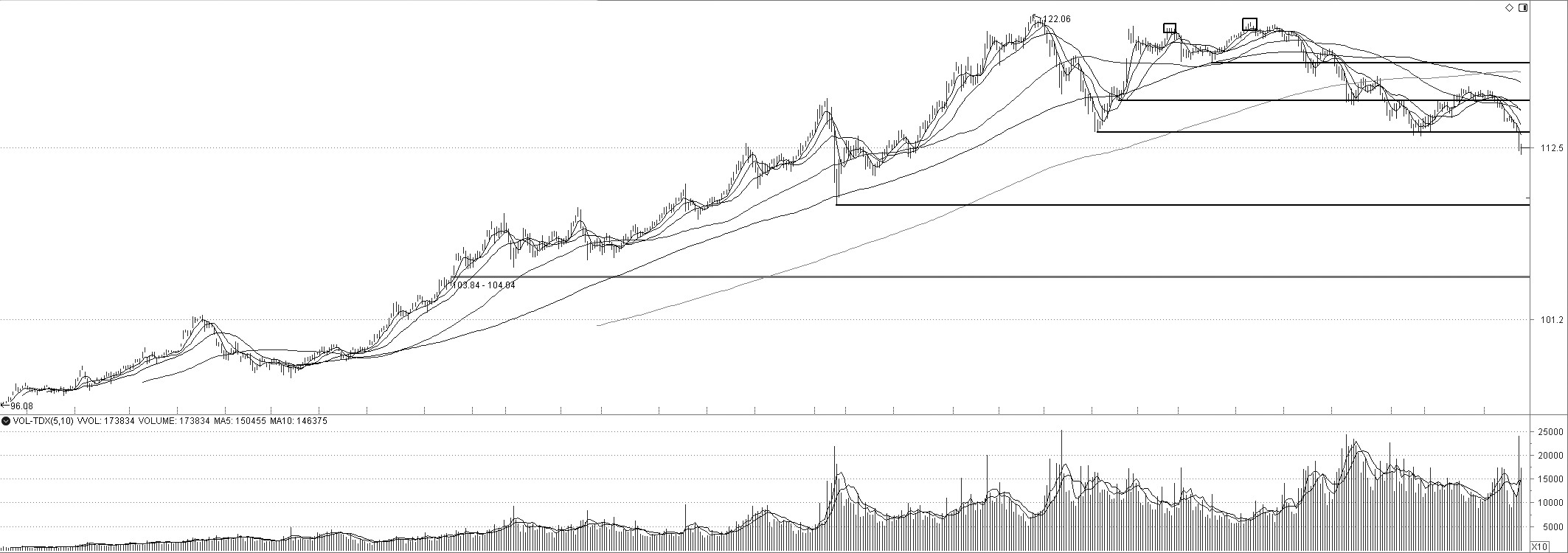 上周四TL加权跌破重要的支撑位113.30,再创年内新低。均线方面,均线系统再度呈现空头排列,下跌趋势重启。MACD绿柱扩大,但DIF与DEA仍在0轴之下,表明TL加权仍然具备下跌动能。整体看,TL仍有下行空间,MA5为短期移动压力线,下方或测试去年9月30日形成的低点的支撑情况。(招商期货 于虎山)