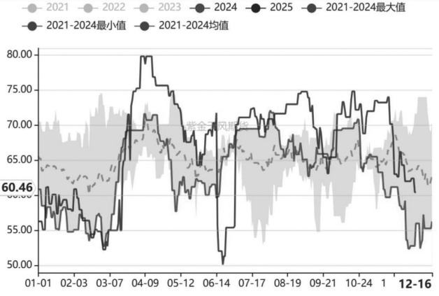 供应方面,国内整体开工率维持高位,煤制甲醇装置开工率偏高。今年以来,煤炭价格偏弱运行导致内地煤制甲醇装置利润较好,相关企业开工意愿较强。国内天然气制甲醇装置12月开始陆续停车,预计明年1月中下旬重启,短期供应可能下降。