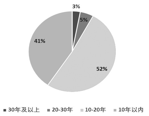 图为国内甲醇装置年限统计