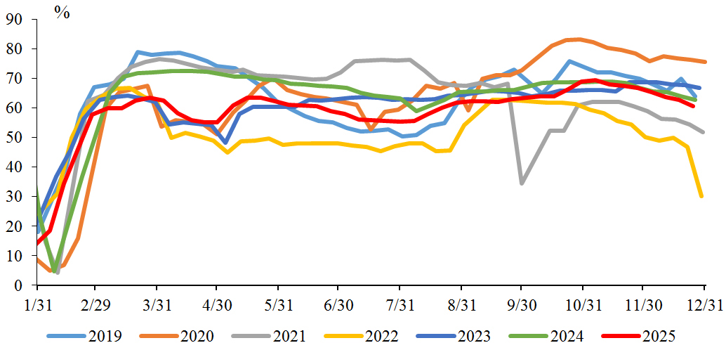 图为江浙地区下游织机开工率