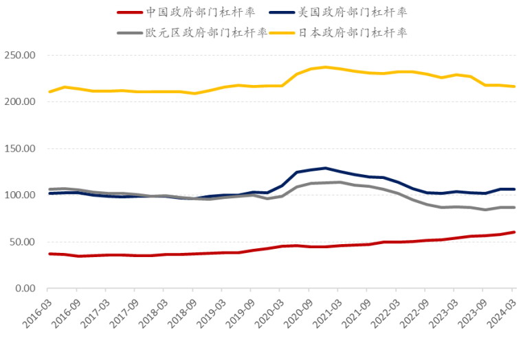 根据财政部数据,截至2024年年末,我国政府全口径债务总额为92.6万亿元,包括国债34.6万亿元、地方政府法定债务47.5万亿元、地方政府隐性债务10.5万亿元,政府负债率为68.7%。截至2024年一季度末,美国政府部门杠杆率为106.2%,日本政府部门杠杆率为216.8%,欧元区政府部门杠杆率为86.9%。相较于其他主要经济体,我国政府负债率仍处于偏低水平。由此可见,我国继续实施扩张性的财政政策仍有较为广阔的空间。