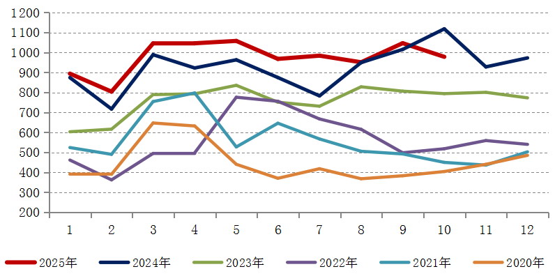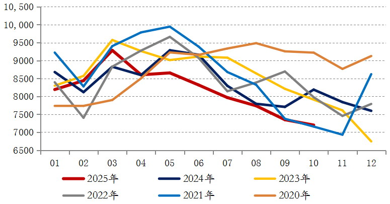 根据国家统计局数据,2020年粗钢产量达到10.65亿吨的峰值之后,产量逐年降低,2024年产量降至10.05亿吨。过去4年,粗钢产量累计降幅达到6000万吨,年均降幅达到1500万吨。2025年,虽然钢铁行业利润有所改善,但是随着钢铁企业自律控产意识增强,粗钢产量延续下降态势:2025年1—10月粗钢产量为8.18亿吨,同比下降3286万吨。由此可见,在经历了行业下行周期后,钢铁企业自律控产意识显著增强,这从一定程度上缓解了我国钢铁行业产能过剩的压力。