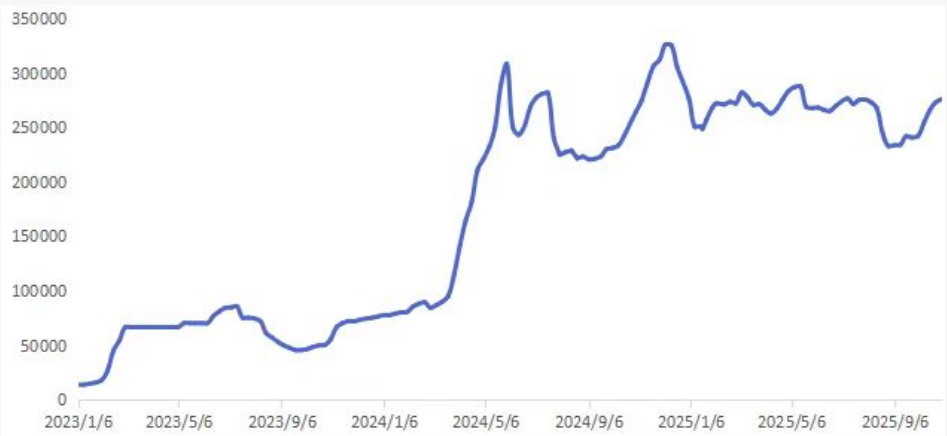 第二阶段,一系列“反内卷”政策迅速扭转行业预期,推动多晶硅现货价格强势上行,期货价格也随之进入上升通道。2025年7月,工信部召开光伏产业高质量发展座谈会后,主要硅料企业为遵循“不低于成本销售”的法规要求,集体将报价提至综合成本线以上。截至2025年12月底,多晶硅N型复投料成交均价已达5.39万元/吨,较7月初显著上涨。从成本视角看,2025年行业成本区间为4.03万~4.29万元/吨,当前现货价格已明显高于该水平。头部企业如通威股份多晶硅综合成本约4.2万元/吨,并在此轮涨价中实现盈利;大全能源三季度单位成本也环比大幅下降。成本线已成为现货价格的重要支撑,并进一步传导至期货市场。