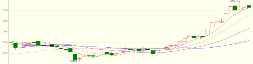 IC加权以45度角持续上涨,K线以中阳线为主,显示出多头压倒性优势,空头几乎无力组织有效抵抗。这种上涨惯性强大,若未出现明显的反转信号,难言见顶。各周期均线多头排列,K线沿5日均线上涨。MACD延续上行,红柱小幅收窄,上涨趋势健康。成交活跃,持仓处于高位。综合来看,IC短期可能存在超买的现象。