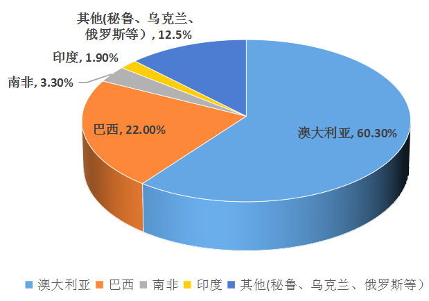 2025年,中国铁矿石进口量为12.6亿吨。从2025年中国铁矿石进口国别数据来看,自澳大利亚进口7.59亿吨,占比为60.3%;自巴西进口2.77亿吨,占比为22%;自南非进口4210万吨,占比为3.3%;自印度进口2341万吨,占比为1.9%。中国长期依赖澳大利亚和巴西铁矿石供应的格局使得铁矿石定价权较为集中,溢价水平始终高于钢材,成本波动较大。在黑色系中,铁矿石长期处于强势地位。