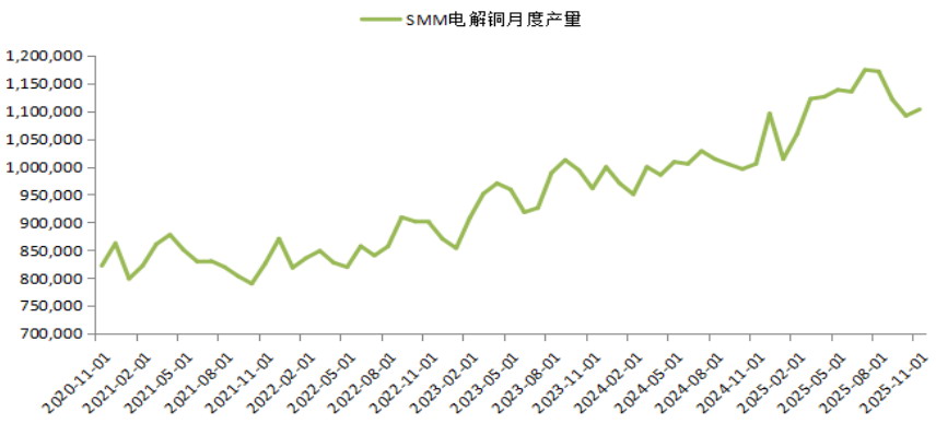 图为国内电解铜月度产量(单位:吨)