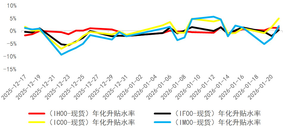 在行情的推动下,股指期货各个品种的贴水明显缩小。截至1月21日,IC2602和IM2602均转为升水,年化升水率分别达到了4.76%和1.79%。在上涨预期的推动下,多头力量不断增强,机构投资策略也随之改变,从而造成升贴水结构的变化,核心是“多头增量入场+空头边际收敛+机构策略转向”三重共振。其中,多头增量来自指增、套利、雪球对冲、指数替代等,机构策略从“空单对冲”转向“多头上攻+基差收敛”,推动期货价格向现货靠拢。