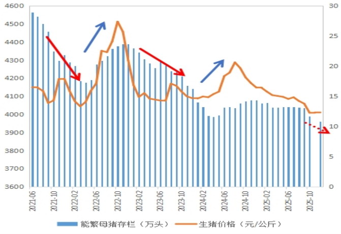 长期来看,国内最新一轮能繁母猪产能去化已于2025年10月启动。当前生猪养殖产业规模化程度处于高位,使得产能去化呈现渐进式特征,可能会削弱其对猪价上涨的推动力。若产能去化进程持续,2026年下半年猪价仍有望迎来拐点。
