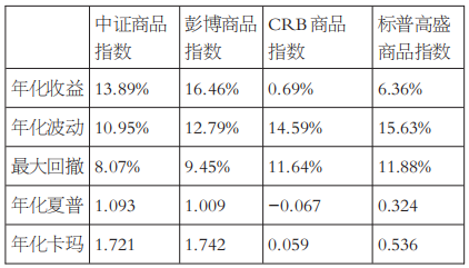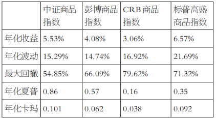 中证商品指数与彭博商品指数则各有优劣:前者的收益弹性相对偏低,但回撤与波动幅度更小;后者凭借更高的金属品类权重,尤其是配置了一定比例的白银资产,收获了更优的收益贡献。两者的夏普比率与卡玛比率数值则较为接近。