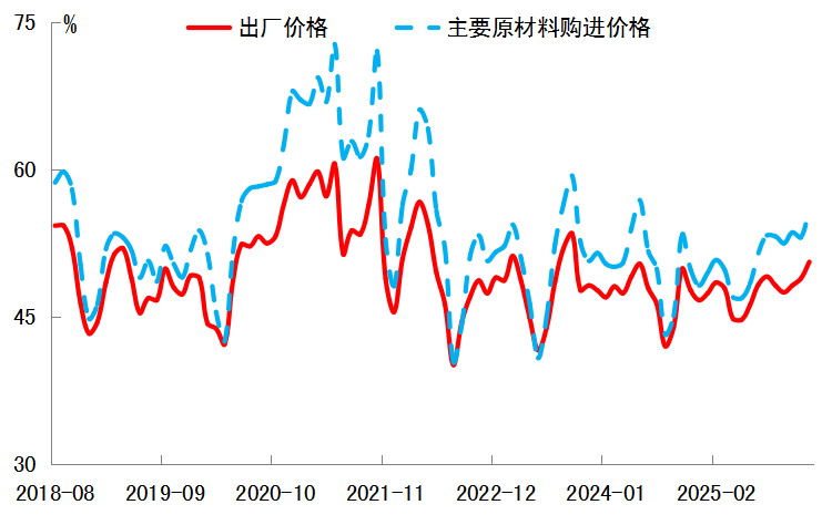 1月经济景气水平整体有所波动,制造业和非制造业PMI双双回落。1月制造业PMI为49.3%,再度回落至荣枯线下方,主要受传统淡季和市场有效需求不足的影响。从供需结构看,生产指数虽回落至50.6%,但仍处于扩张区间。新订单指数下降至49.2%,重新落入收缩区间。新出口订单指数为47.8%,较上月下降1.2个百分点。开年以来,制造业供需两端均显疲弱,且需求端的下滑幅度更为显著。价格方面迎来明显改善,主要原材料购进价格指数和出厂价格指数分别上升至56.1%和50.6%。出厂价格指数近20个月来首次升至荣枯线以上,表明制造业市场价格总体水平有所改善,企业定价能力有所恢复。原材料购进价格涨幅显著高于出厂价格,原材料成本上涨压力也有所增加。企业规模维度的景气分化持续凸显,大型企业继续保持扩张,发挥支撑作用;中、小型企业PMI分别为48.7%和47.4%,景气度进一步收缩,表明中小微企业面临的经营压力更大。在行业层面,结构性分化依旧明显。高技术制造业和装备制造业表现良好,持续领跑,显示经济转型升级的积极成效。消费品行业和高耗能行业景气水平回落,反映出传统领域和部分下游行业仍面临较大挑战。