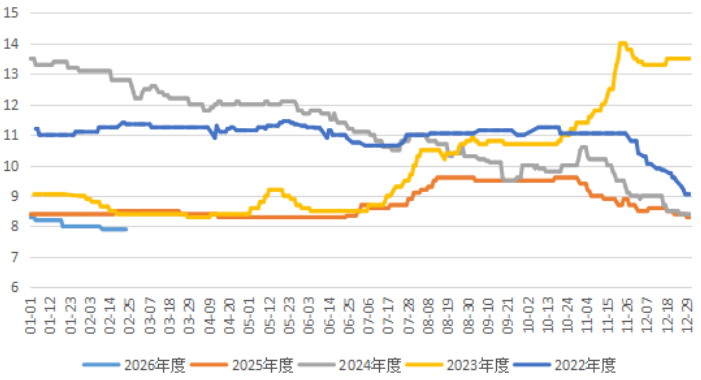 步入马年,红枣市场正逐步探寻新的供需平衡点。目前,高库存已成为压制价格的核心变量,而天气因素则是打破这一平衡的关键变量。节后现货市场逐渐进入消费淡季,部分贸易商为加快出货节奏,可能提前降价促销。然而,由于需求端承接能力有限,市场往往在此阶段进入震荡筑底状态,需重点关注天气风险对远月合约的突发性冲击。从月间结构看,红枣期货呈现近弱远强格局,但远月升水幅度有限,反映出市场对长期供需改善的预期较为谨慎。