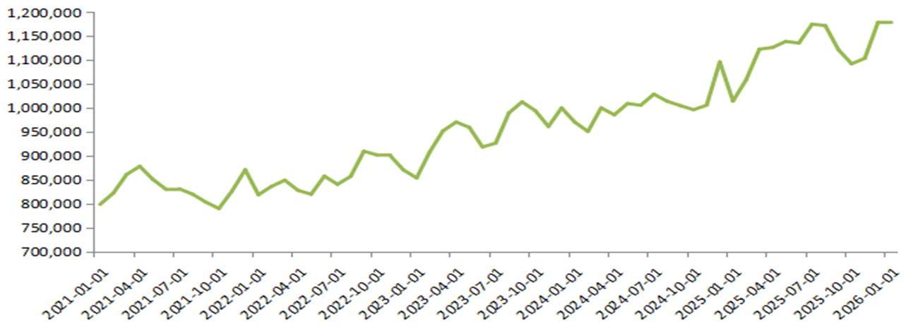图为中国电解铜月度产量(单位:吨)
