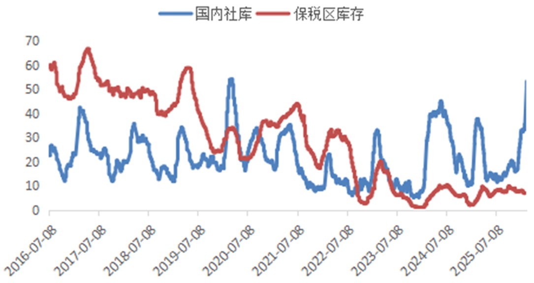 图为中国电解铜社会库存(单位:吨)
