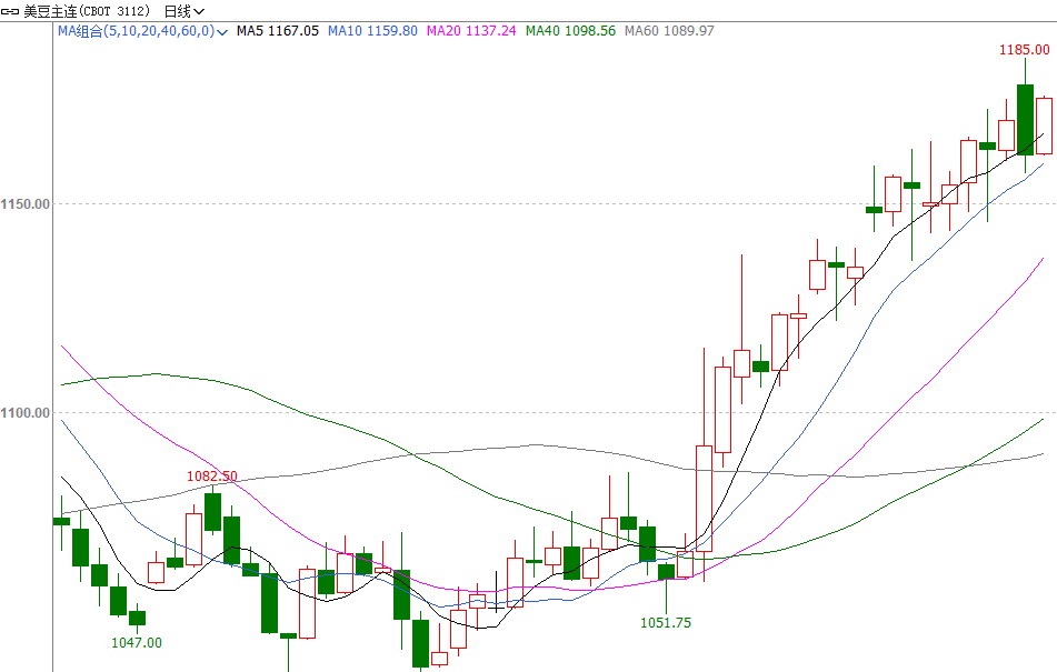 图为CBOT大豆期货主力合约走势